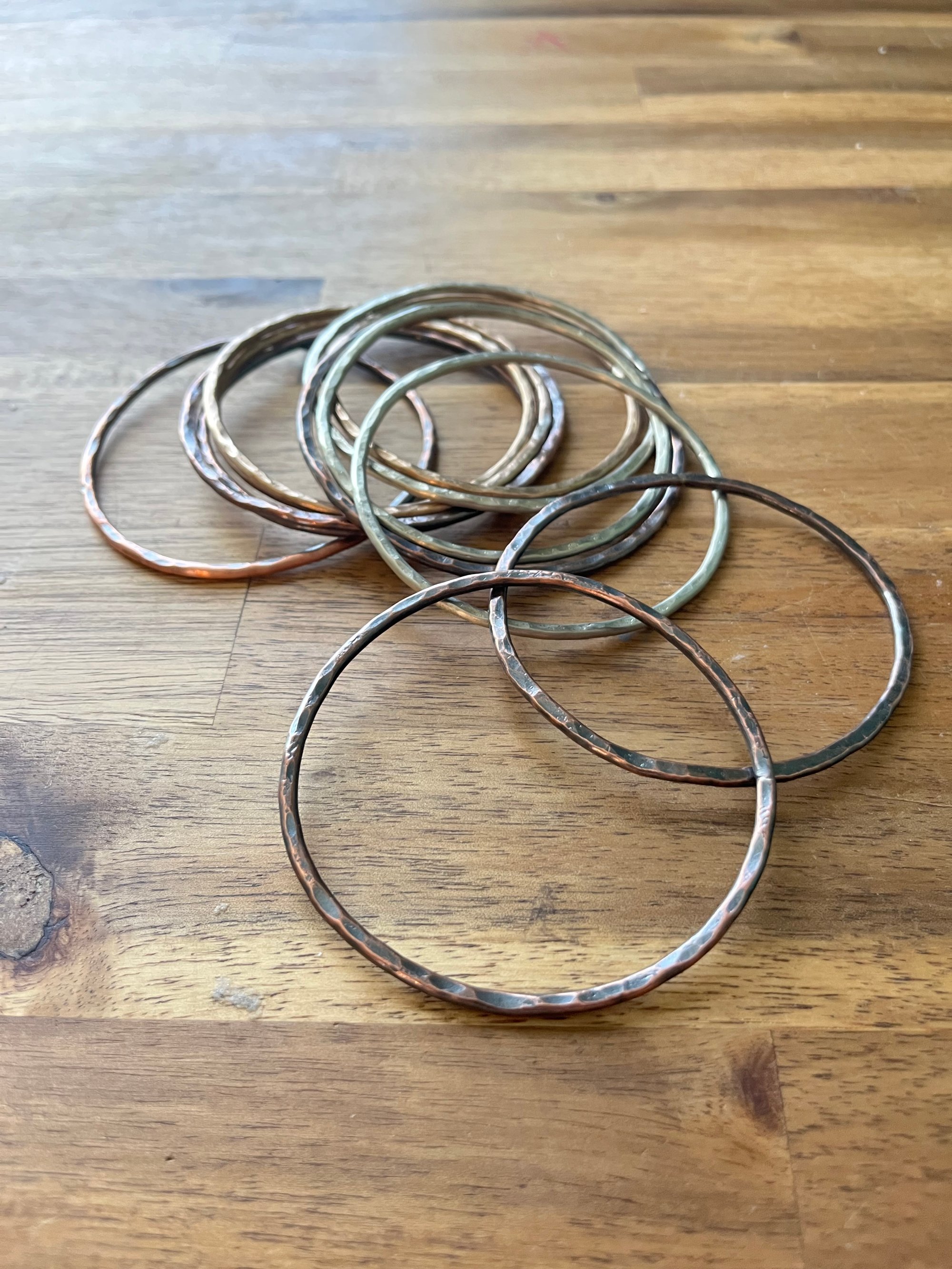 Perfect for any occasion. Available in copper, bronze, and nickel silver. Mix and match or create a stack!