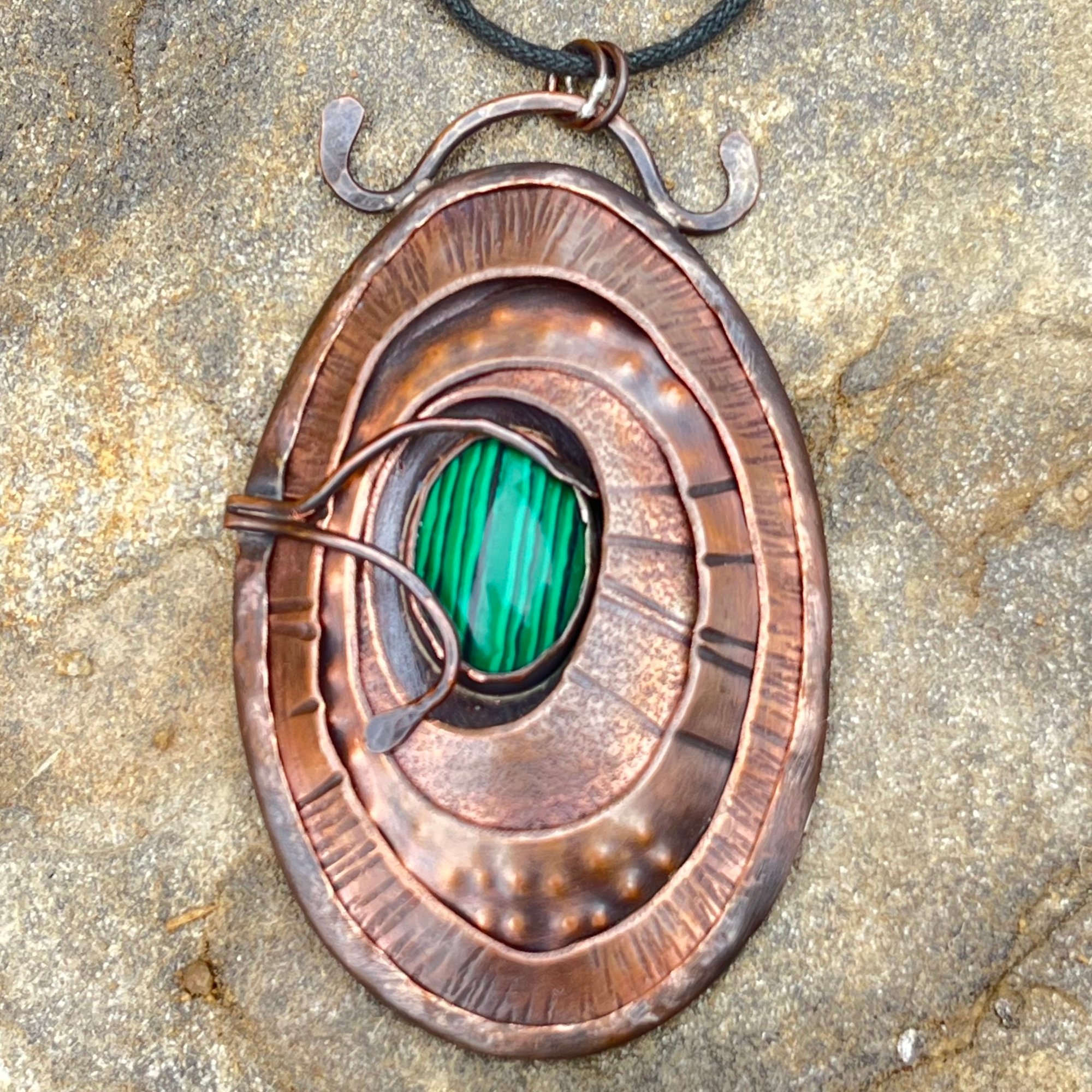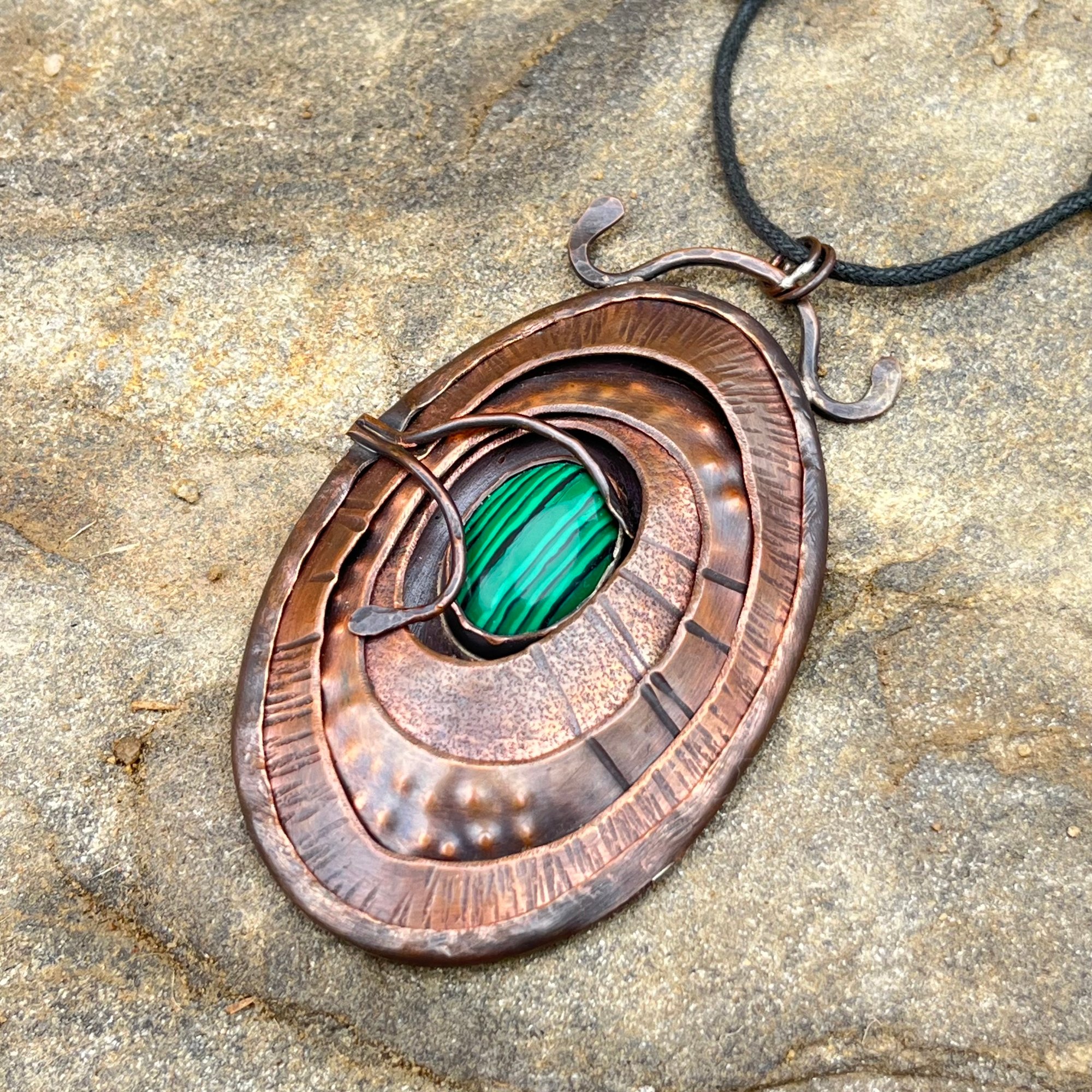 Inspired by limpets found in the shallow pools of the ocean, this handcrafted pendant features layered, textured copper—each element shaped and formed to reflect the quiet strength and resilience of these steadfast sea creatures. The copper is carefully set like a stone, creating depth, structure, and a grounding presence.